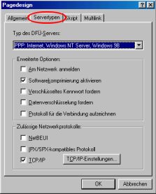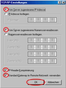 Netzwerkeinstellungen des DFÜ-Netzwerkes.