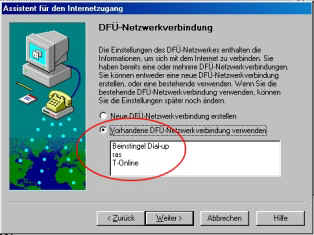Selektieren Sie hier Ihre vorhandene Internetverbindung.