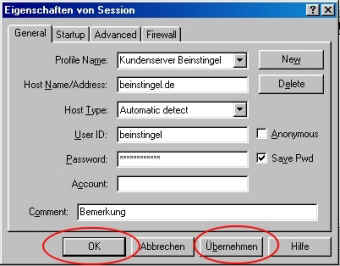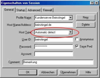 ähnlich, daher bescheibt unser Beispiel den Vorgang nur für das Programm WS_FTP95 LE.