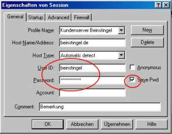 Selektieren Sie anschließend das Feld "Save Pwd", um das Passwort